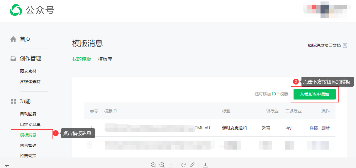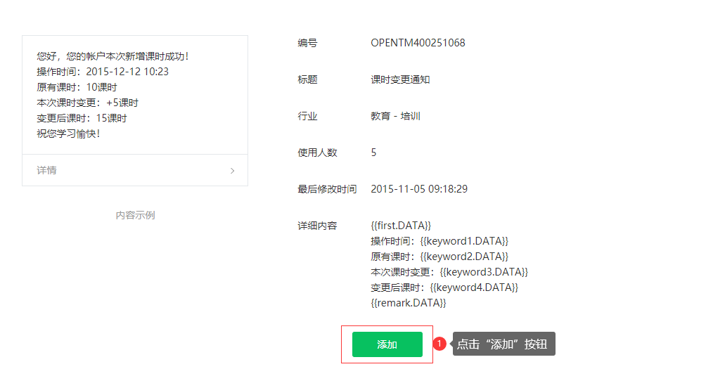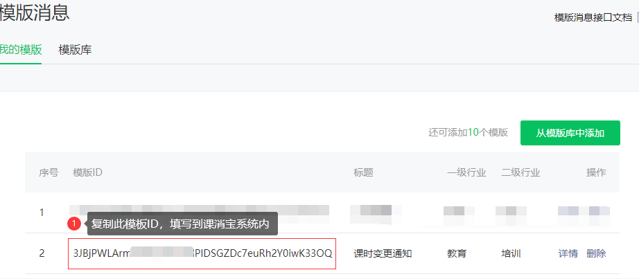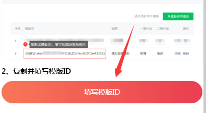 8、点击填写模版ID并填入模版ID